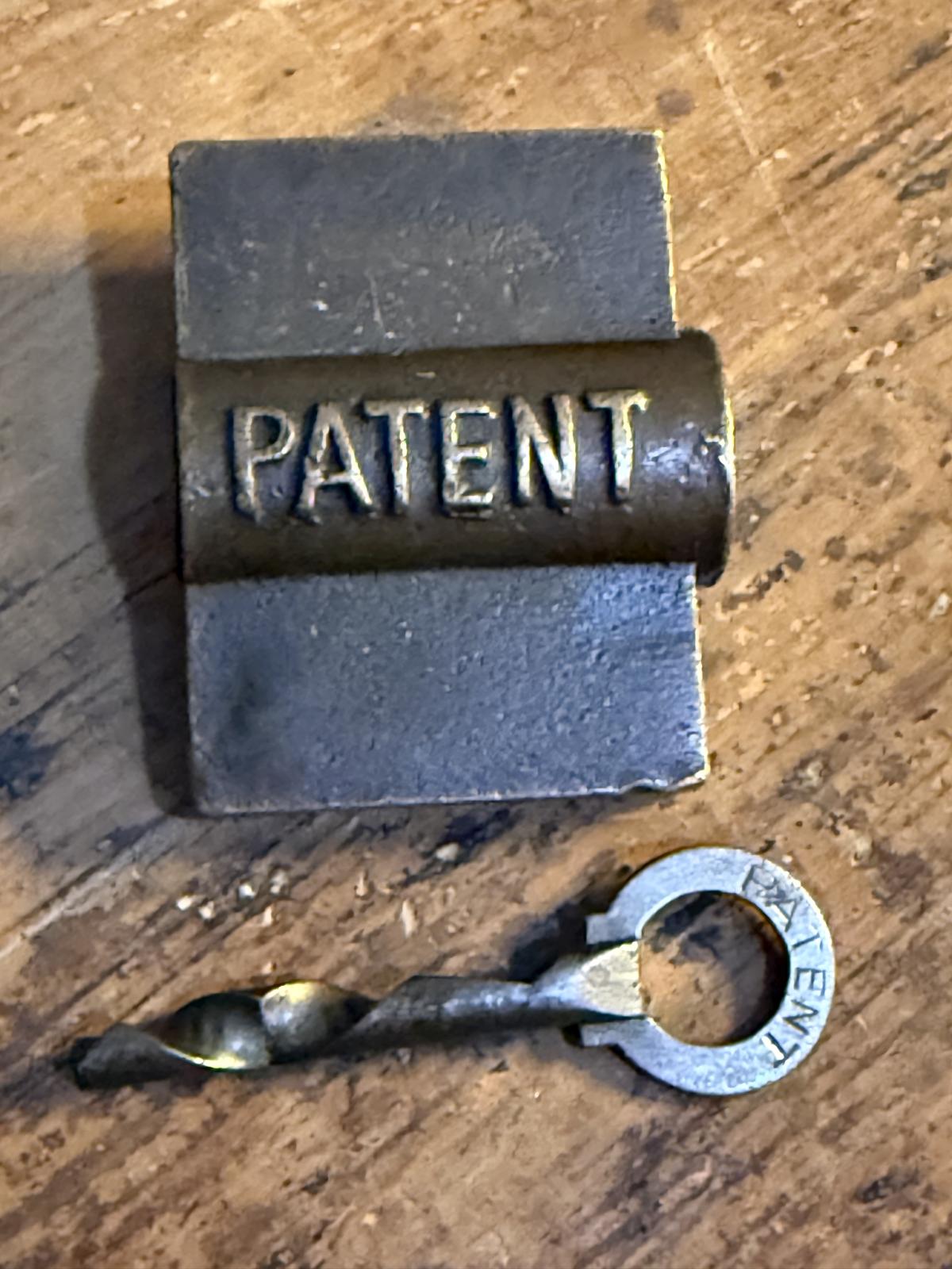 Lacăt din metal masiv, inscripționat pe ambele fețe „HASUT” și „PATENT”.